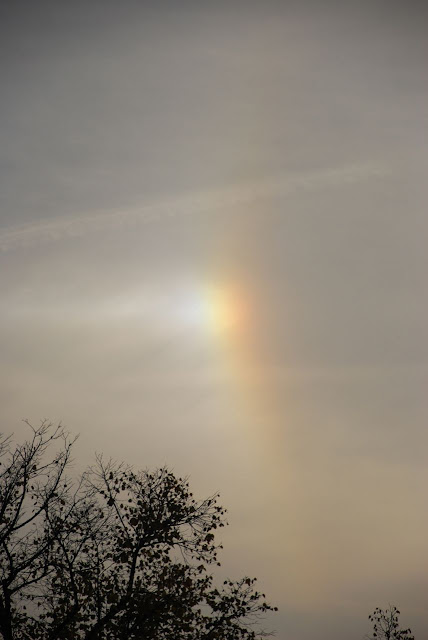 Gestern, am späten Nachmittag, gab es in meinem Stadtteil ein ungewöhnliches und ziemlich lang anhaltendes Himmelsspektakel: Rechts und links von der Sonne spiegelte sich das Licht. Es sah aus, als würden zwei kleine Sonnen neben der großen aufleuchten. Ich glaube man nennt das Halo.